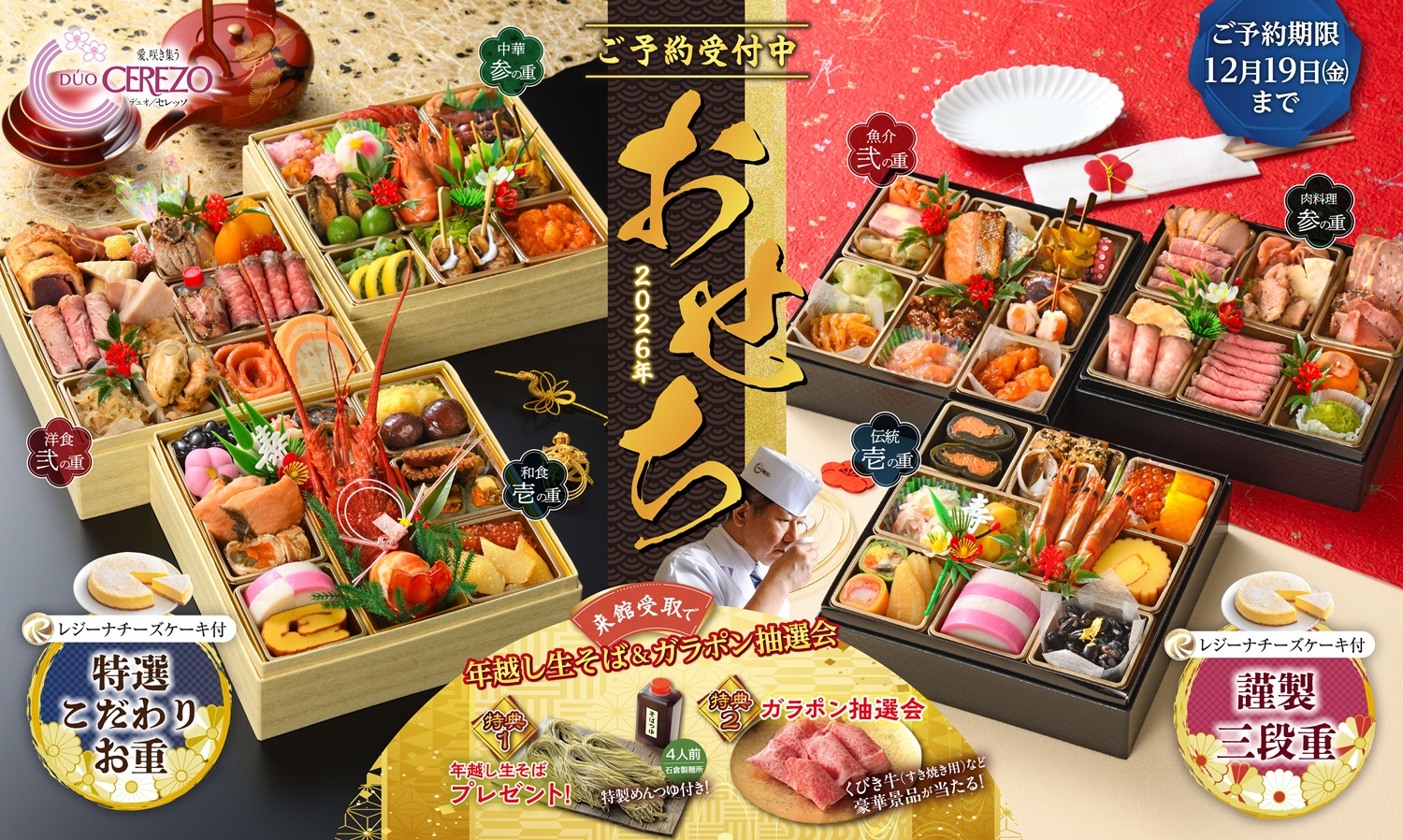 家族みんなで色とりどりのお重を囲み、楽しいお正月を迎えませんか。ぜひ、新年のおせちもデュオ・セレッソにお任せください。