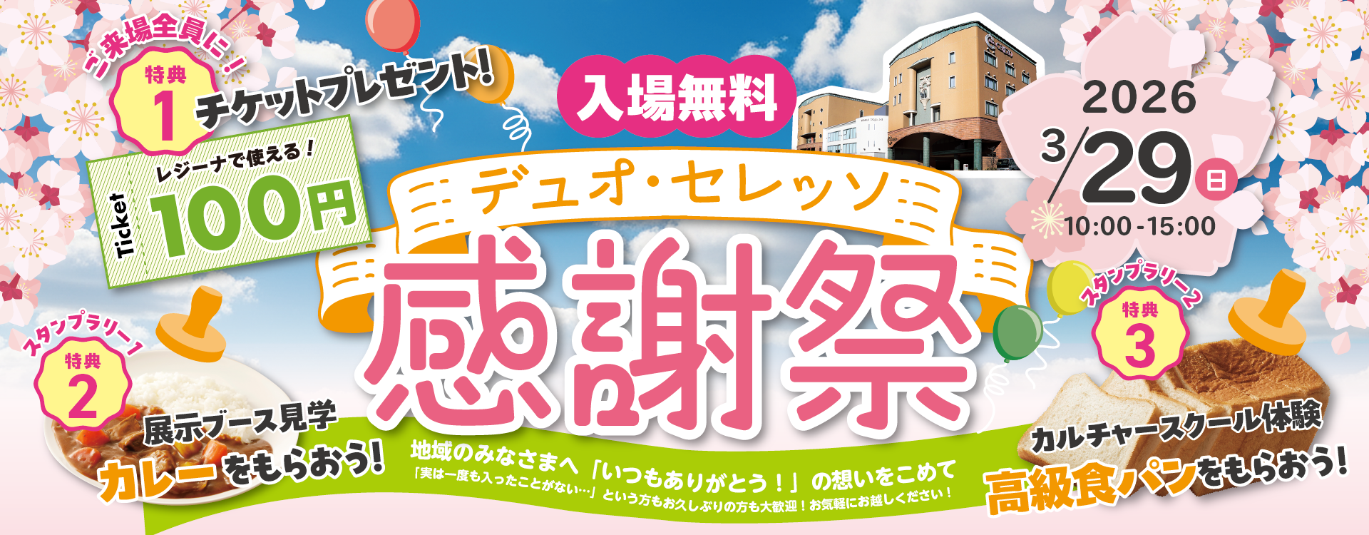 入場無料・予約不要ですので、ご家族やご友人と一緒にお気軽にお越しください。🌸 3大特典付き!スタンプラリー&ご来場プレゼント🌸