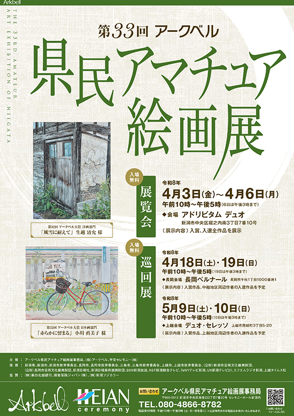 新潟県内のアマチュア画家の情熱が集結する「アークベル県民アマチュア絵画展」。 いよいよ5月9日・10日の2日間、上越市の「デュオ・セレッソ」にやってきます✨